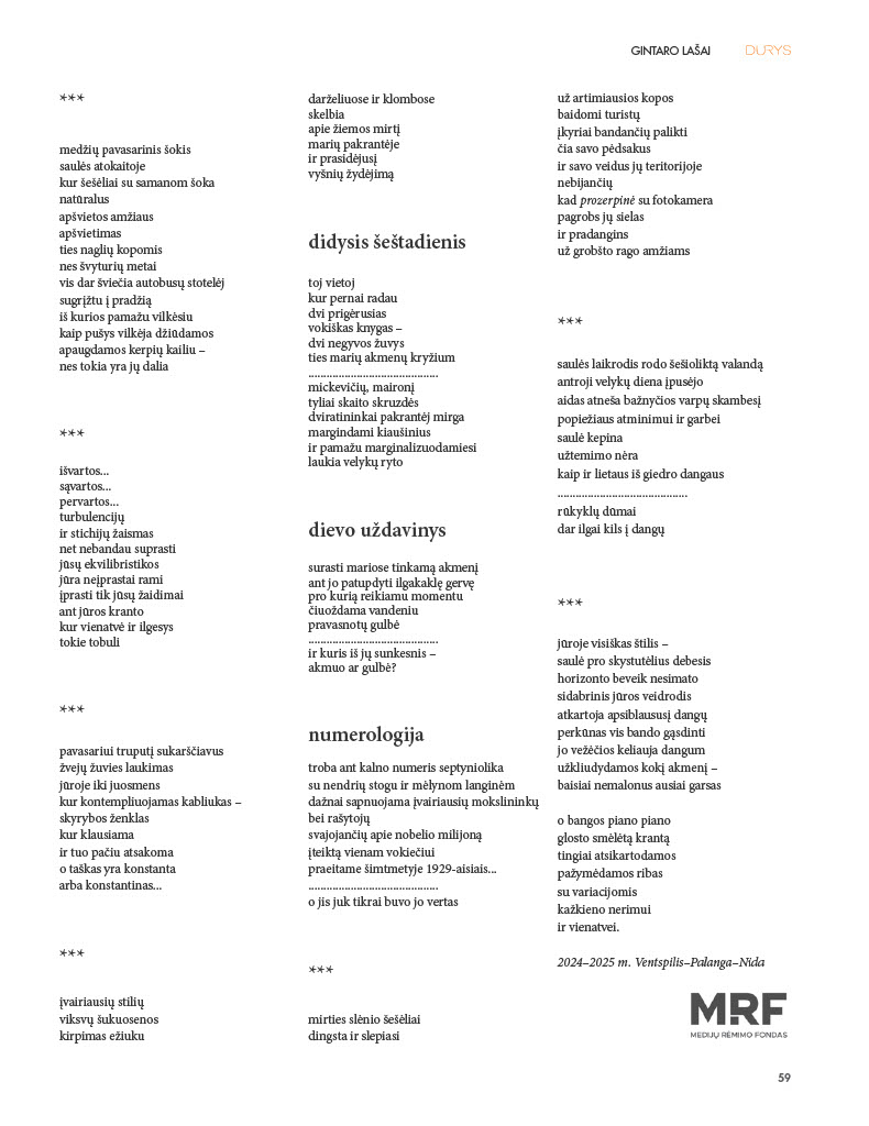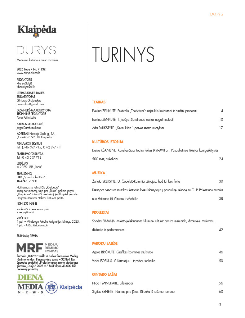 "DURYS" KULTUROS IR MENO ŽURNALAS / 2025 LIEPA / Nr. 7 (139)