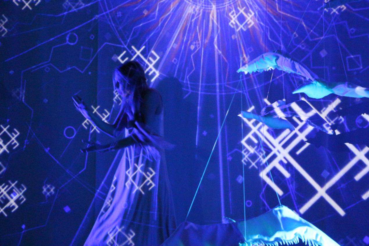 „Daugelis šį reginį įvardija kaip sapną, – pasidalina pašnekovė. – M. K. Čiurlionis taip pat kūrė tarsi fantastinę erdvę, panašią į sapną, į kurį mes įsiliejame, o paskui būna sunku iš jo išeiti. Visa tai keliauja per pasirinktą paukščių leitmotyvą, nes ir scenografijoje matome kabančius paukščius. Jie yra pagrindinis jungiamasis simbolis.“
