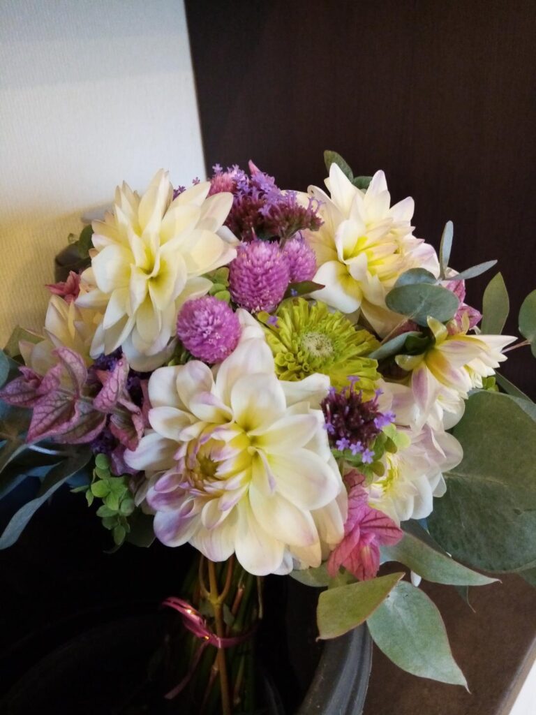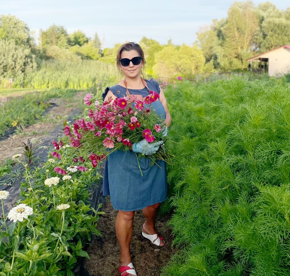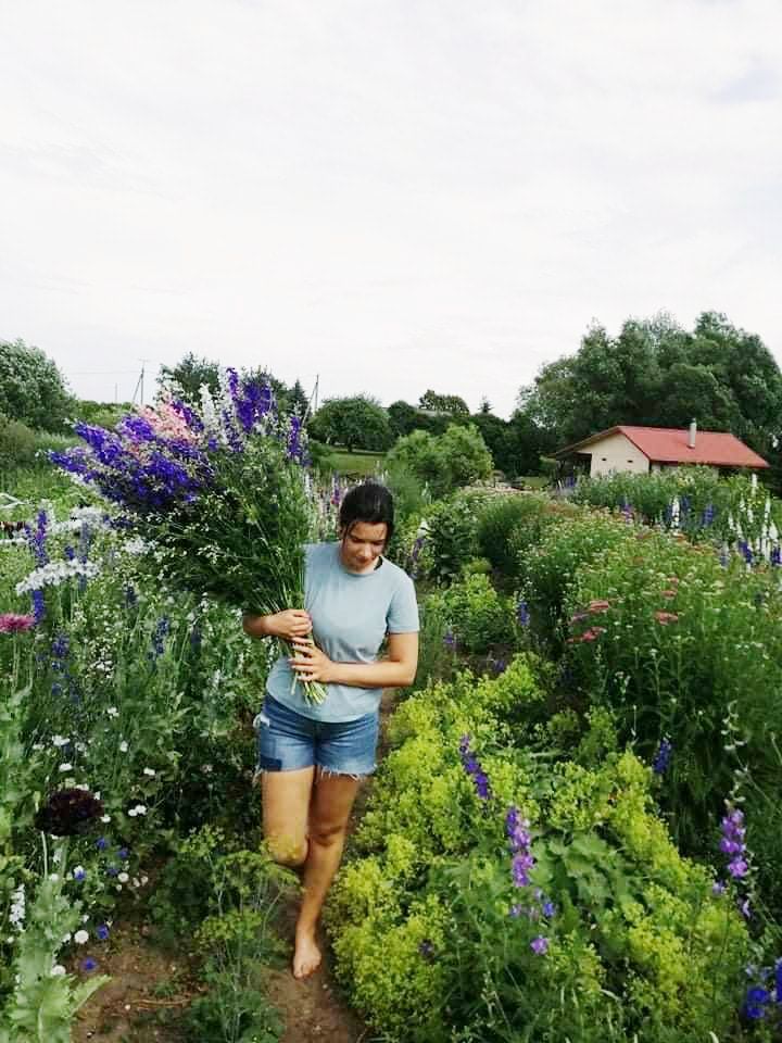 – Mes bandėm labai daug visokių žemės ūkio veiklų. Gyvename kaime, mūsų sodyba yra šiek tiek daugiau negu hektaras, tad žinote, tos žalios pievos mums atrodė per daug, todėl esame išbandę viską: ir svogūnus, ir česnakus, ir krapus, ir braškes. Netgi kmynus auginome. O šitas etapas prasidėjo po to, kai mano sesė grįžo iš Amerikos. Ten labai populiarūs šeimos ūkiai, kurie augina sezonines skinamas gėles. Tai ji parvežė man šitą idėją. Pirkom iš amerikiečių pamokas, kaip jie tai daro, mokėmės. Tada viena iš atstovių, pas kurią vežame gėles į Vilnių, padovanojo knygą apie tokio ūkio priežiūrą ir puoselėjimą (Erin Benzakein, Julie Chai „Cut Flower Garden“). Tuomet dar šiek tiek pasitobulinau Jonavos profesinio rengimo centre apie gėlių komponavimą. Taip ir tęsiasi ilgiausias mūsų veiklos etapas, kuris džiugina iki šiol.