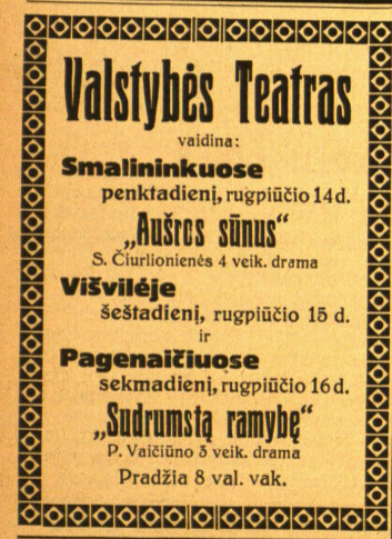 Vėliau „Klaipėdos žinios“ pranešė, kad teatras sugrįš į Klaipėdą – rugpjūčio 7 d. suvaidins čia dar nė karto nerodytą 3 veiksnių dramą „Valdovo sūnus“. Taip pat buvo numatyta Sauguose, Bigos salėje, Plaškiuose, Serūnienės salėje, Viešvilėje, Staugos salėje, ir Pagenaičiuose, Štiro salėje, rodyti „Sudrumstą ramybą“, o Smalininkuose, „Deutsches Haus“ salėje – „Aušros sūnus“.