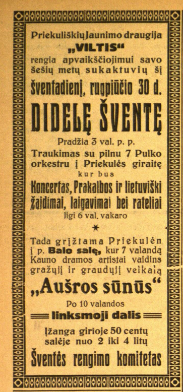 „Priekulėje Valstybės Teatras rengia vakarą drauge susitaręs su vietos jaunimo draugija „Viltis“, – rašė „Klaipėdos žinios“, vėliau nebepaskelbusios ir jokių atsiliepimų apie šiuos du baigiamuosius teatralų akordus.