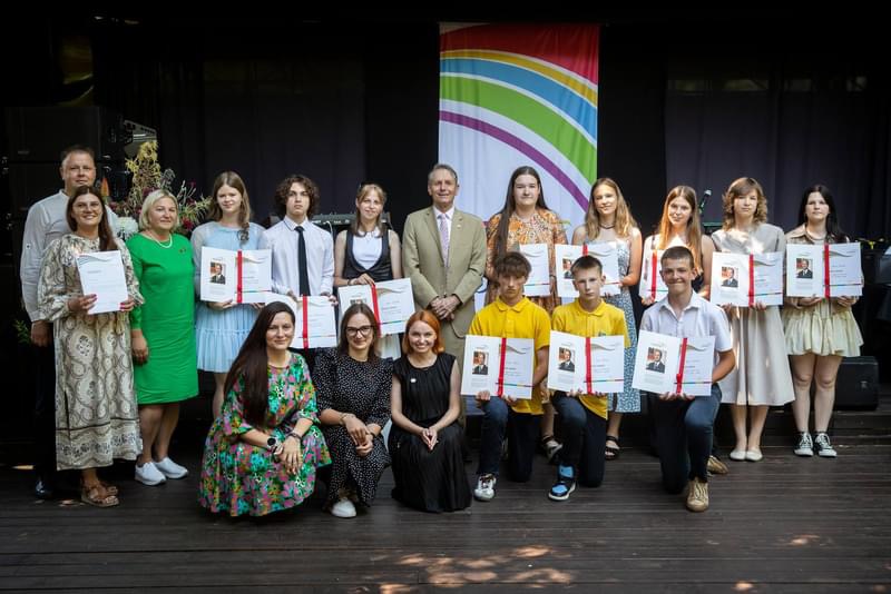 Jaunieji DofE programos dalyviai apdovanojimus gauna iš Jungtinės Karalystės ambasadoriaus Lietuvoje rankų./Akvilės Kupčinskaitės ir asmeninio pašnekovų archyvo nuotr.