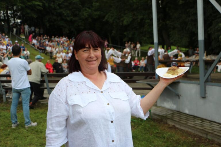 Branginu šį kraštą, todėl organizuojant šventes mielai prisidedu, kuo galiu. O šiandien visi vaišinasi mano užraugta gira, – pasidžiaugia pašnekovė. – Girą gaminti išmokau iš savo uošvienės. Beje, ji – Onutė.