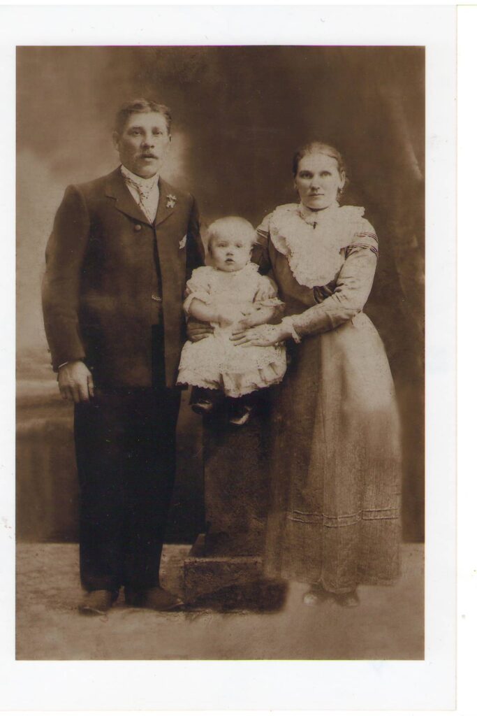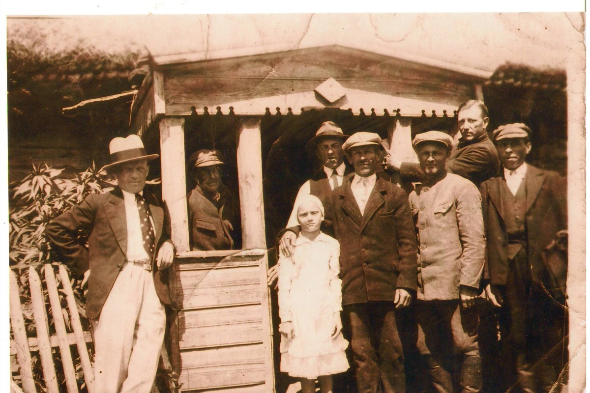 Prie senelių Augustino ir Anelės Žukauskų statyto namo priemenės, Bakšiškių kaimas, apie 1920 metai./Asmeninio archyvo nuotr.