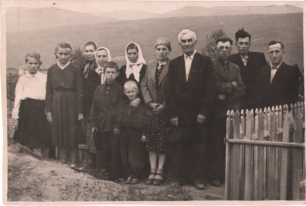 Nuotrauka atminimui Sibiro panoramoje. Iš kairės trečia – Teklė Žukauskienė, ketvirta – Streikauskienė iš Žemaitijos, devintas – Petras Jakimavičius, dešimtas – Juozapas Žukauskas, Irkutsko sritis, Bodaibas, 1957 metai./Asmeninio archyvo nuotr.