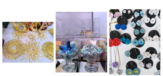 Pamačius papuošalų kūrėją Vitaliją labai nudžiugau. Visų kėdainiečių asmeniškai juk nepažinosi, bet atpažinti juos gali iš tolo. Taip ir čia, šiltas pokalbis tarp mudviejų, kėdainiečių, užsimezgė iš karto. Darbšti ir kūrybinga moteris pristato vėrinius ir apyrankes iš natūralių akmenukų, gintaro.
