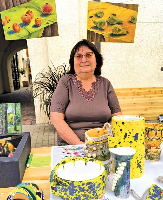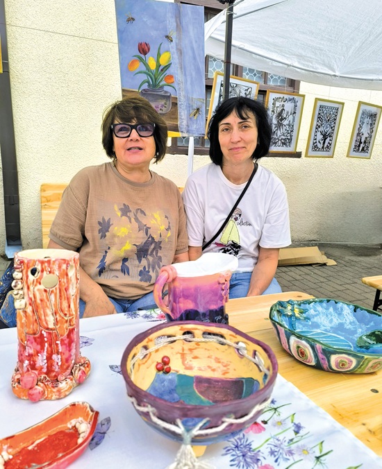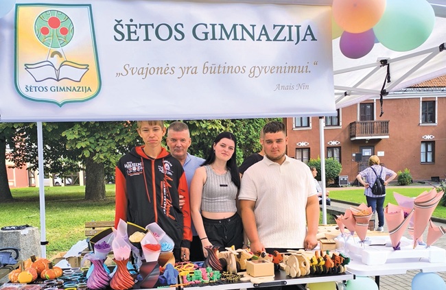 Linksmos pažįstamus ir nepažįstamus su šypsena kalbina ir sveikinasi trys dailės mokytojos, kurios visą gyvenimą apie save kūrė grožį ir dar išmokė juo džiaugtis vaikus. Tai keramikė ir vilnos vėlėja Laimutė Mačiūnienė, tapytoja Daiva Nurdinova ir karpinių meistrė profesionalė Albina Mackevičienė. Jos neakcentuoja yra ar nėra tautodailininkės, juk ne tai esmė. Tiesiog visas jų gyvenimas yra nenutrūkstanti kūryba, meilė vaikams ir savo pomėgiui. Albina mugėje pardavinėjo ir savo šeimos sukurto verslo produktą – vaisių bei daržovių sultis. Jei žmogus darbštus, jis viskam atranda laiko.