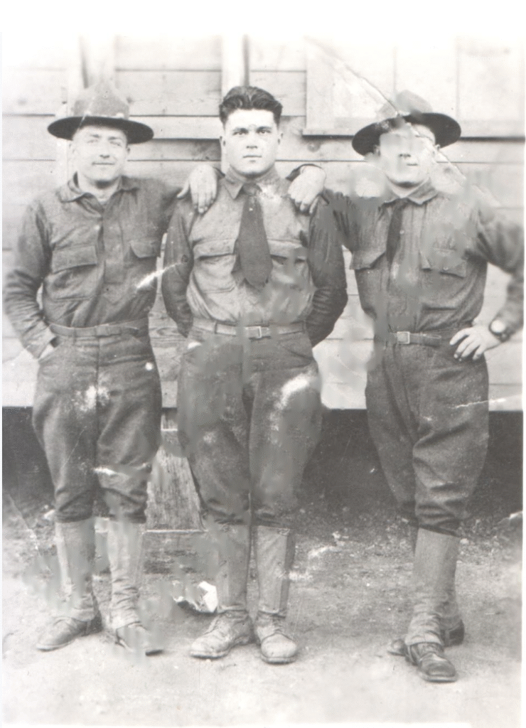 JAV kariuomenės savanoris Nikodemas Kaklauskas (kairėje) su draugais, 1918 m.