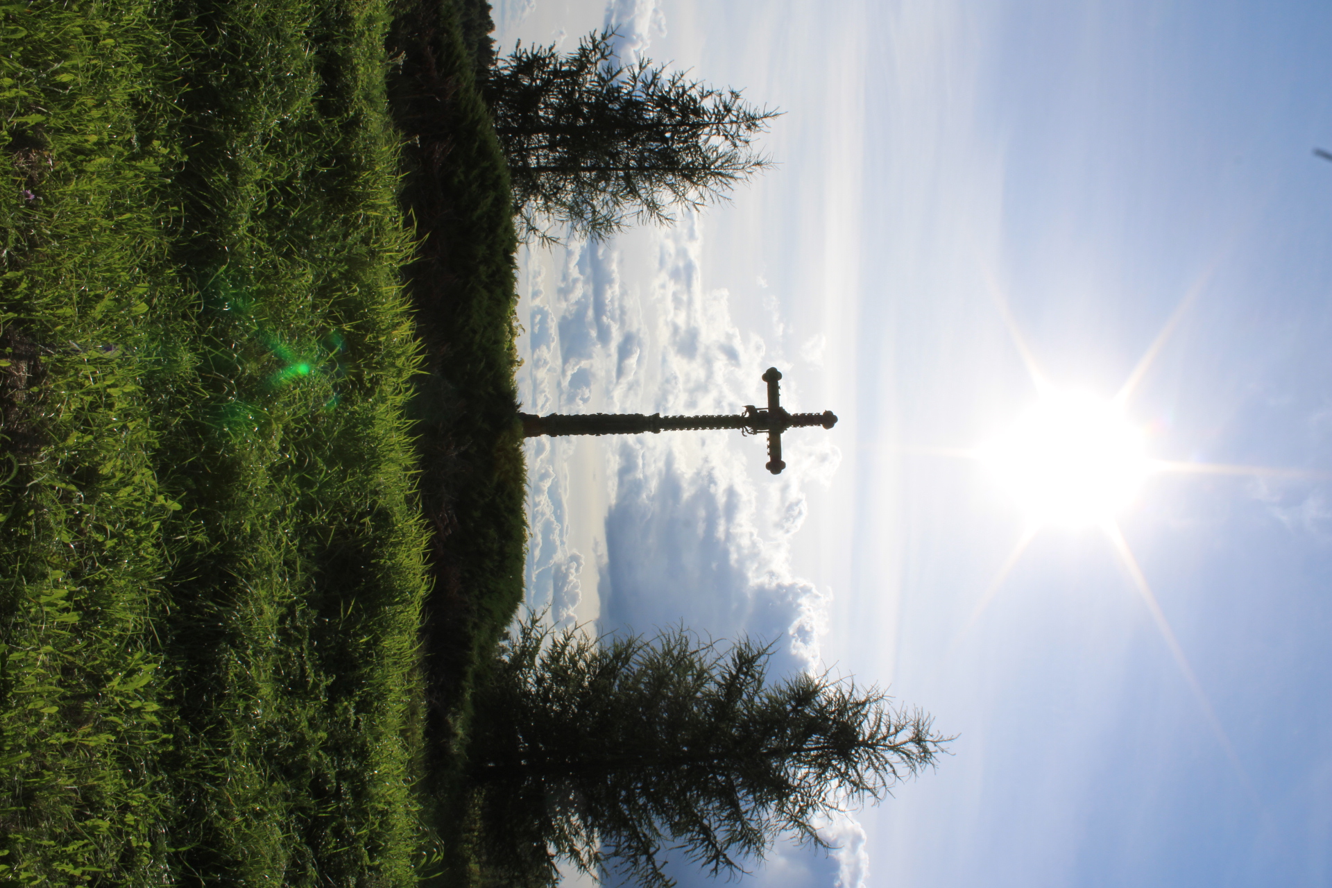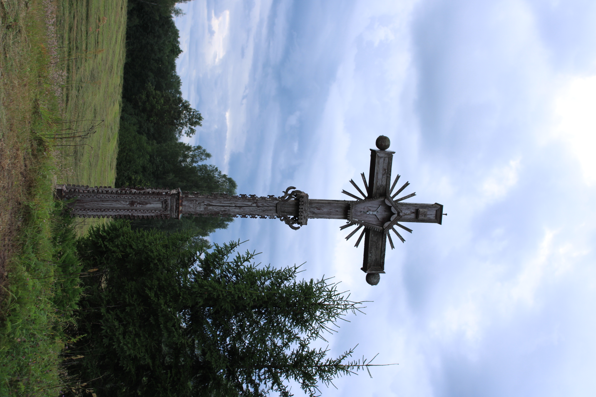 Prie senojo kaimo kelio stovėjo senasis kaimo kryžius, tačiau vienais metais kombainas jį nuvertė. Atstatyti jį apsiėmė A. Mačerauskas, nors, kaip sakė, nei medžio turėjo, nei buvo kryžių daręs. Apsiėmė ir padarė. Buvo 1991-ieji. Pastatė naująjį kryždarbą prie jau kito kelio, vedančio į Kazokiškį, sovietmečiu nutiestą melioratorių. Neapsiėjo kryžiaus gaminimo darbai ir be nelaimės: zeimeris pasigavo ąžuolo strypą, meistras lenkėsi išjungti įrenginio ir gavo tuo strypu į kaktą (gerai, kad tuo metu ir lenkėsi, nes būtų mirtinai užmušę). Visą kruviną vyrą aprišusi žmona buvo tiek susijaudinusi, kad niekaip vyro „Pobeda“ negalėjo nuvežti į ligoninę. Tada sužeistasis pats sėdo prie vairo ir kažkaip pasiekė Gintautą Lisauską („puskilometrį neatsimenu, kaip nuvažiavau“). Nors pastarasis buvo kiek pagėręs, surizikavo nuvežti kryždirbį tiesiai į Utenos ligoninės priimamąjį. Utena peršvietė, perrišo ir išvežė į Vilnių, Šv. Jokūbo ligoninėn. Ten išėmė sulūžusius kaulus, susiuvo, sakė, po metų galės plokštelę dėtis, bet gerai besijaučiąs ligonis taip ir neprisiruošė, juo labiau kad ir tas daktaras numirė.