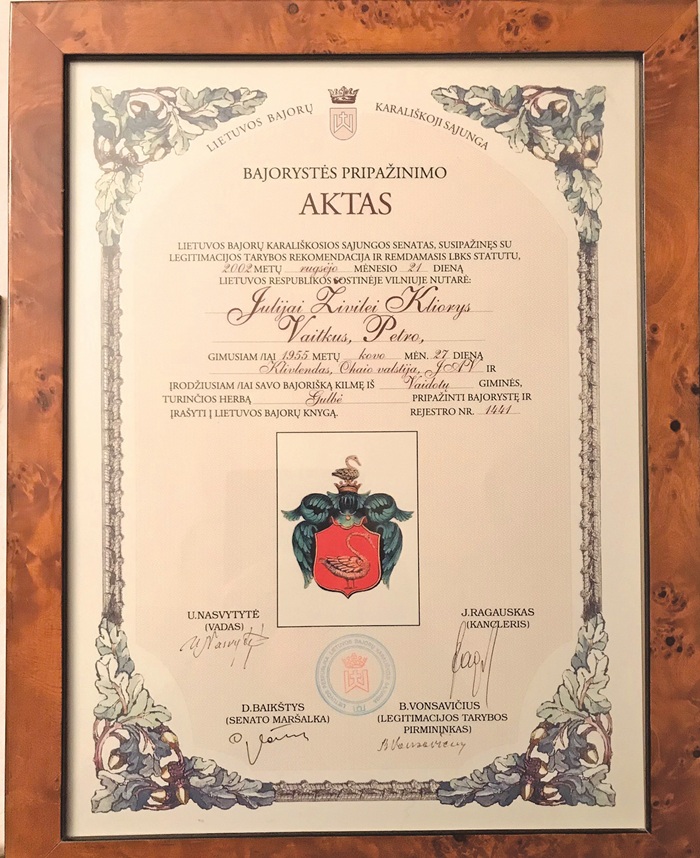 Julijos Živiles dokumentas, patvirtinantis jos bajorystę.