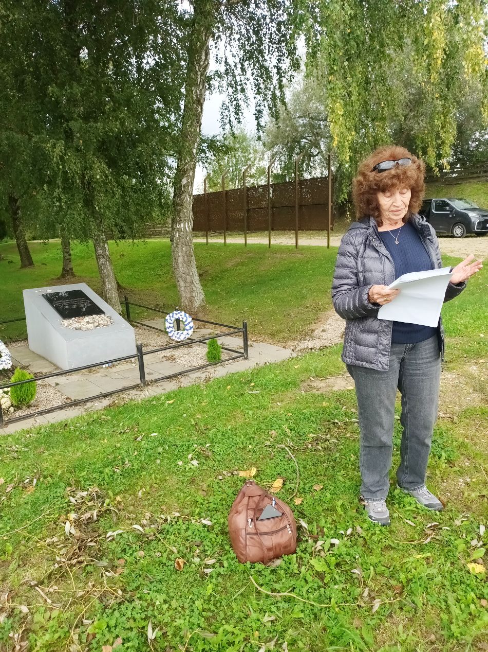 Ziva Bliumbergaite-Zeltzer prie paminklo masinių žydų žudynių aukoms Kėdainiuose./Asmeninio albumo nuotr.